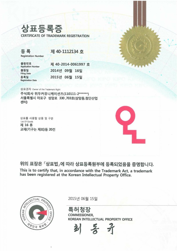 [한국/상표] OLL 16류 페이지 정보 작성자 WeDu 댓글 0건 조회 5,169회 작성일 19-05-30 18:59 본문 2015-06-15 상표 제 40-1112134호 16류 List Previous[한국/상표] OLL 41류 19.05.30 Next[한국/상표] OLL 09류 19.05.30